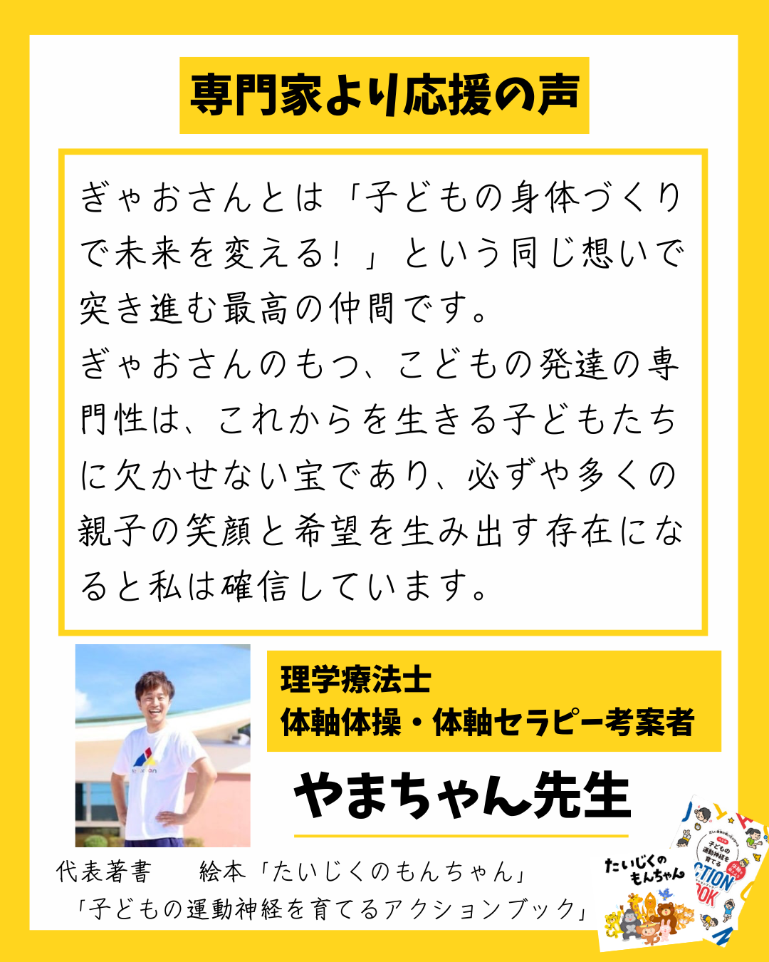 発散させる方法、体を上手に使えるようになる方法などを教わったので、遊びながら様々な力を伸ばして、教室でもがんばれるのではないか?学校って楽しいな・・・と思えるようにしたいです。
