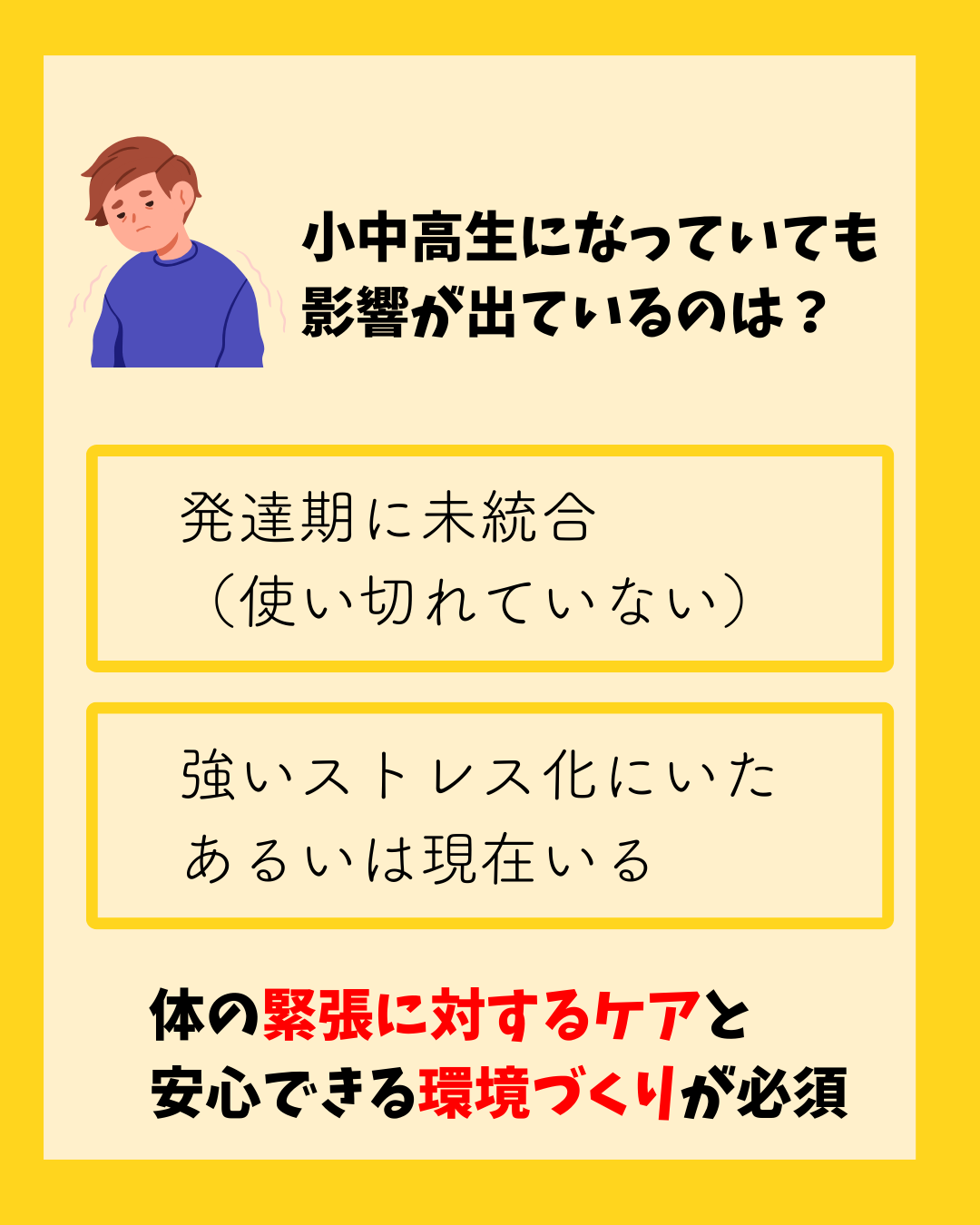 子ども達と関わる中で、何でこういう行動になるのだろう?何で出来ないのだろう?と考える中で、何で?の部分が分からず支援方法に悩んでいませんか。ここには必ず「カラダ」に理由があります。自分ではコントロールが難しい